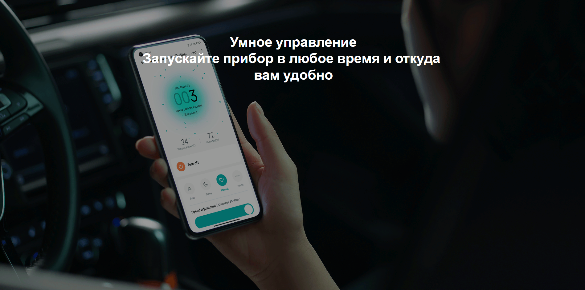 Используйте приложение Mi Home/Xiaomi Home для активации очистителя воздуха по пути домой, чтобы к вашему приезду воздух уже был чистым.